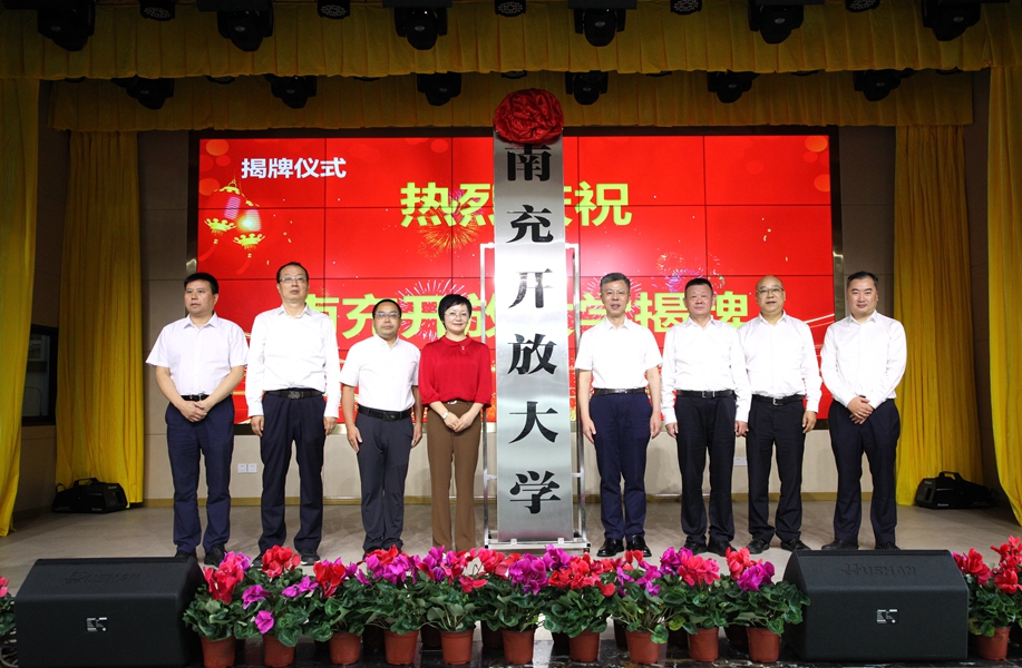 仪式由胡良华主持,宣读了《南充市人民政府关于同意四川省南充广播电视大学更名为南充开放大学的批复》;许澄宣读市委刘强书记的重要批示;南充开大党委书记、校长昝平代表学校致辞;谭文劲、欧阳梅共同为南充开放大学揭牌并讲话。