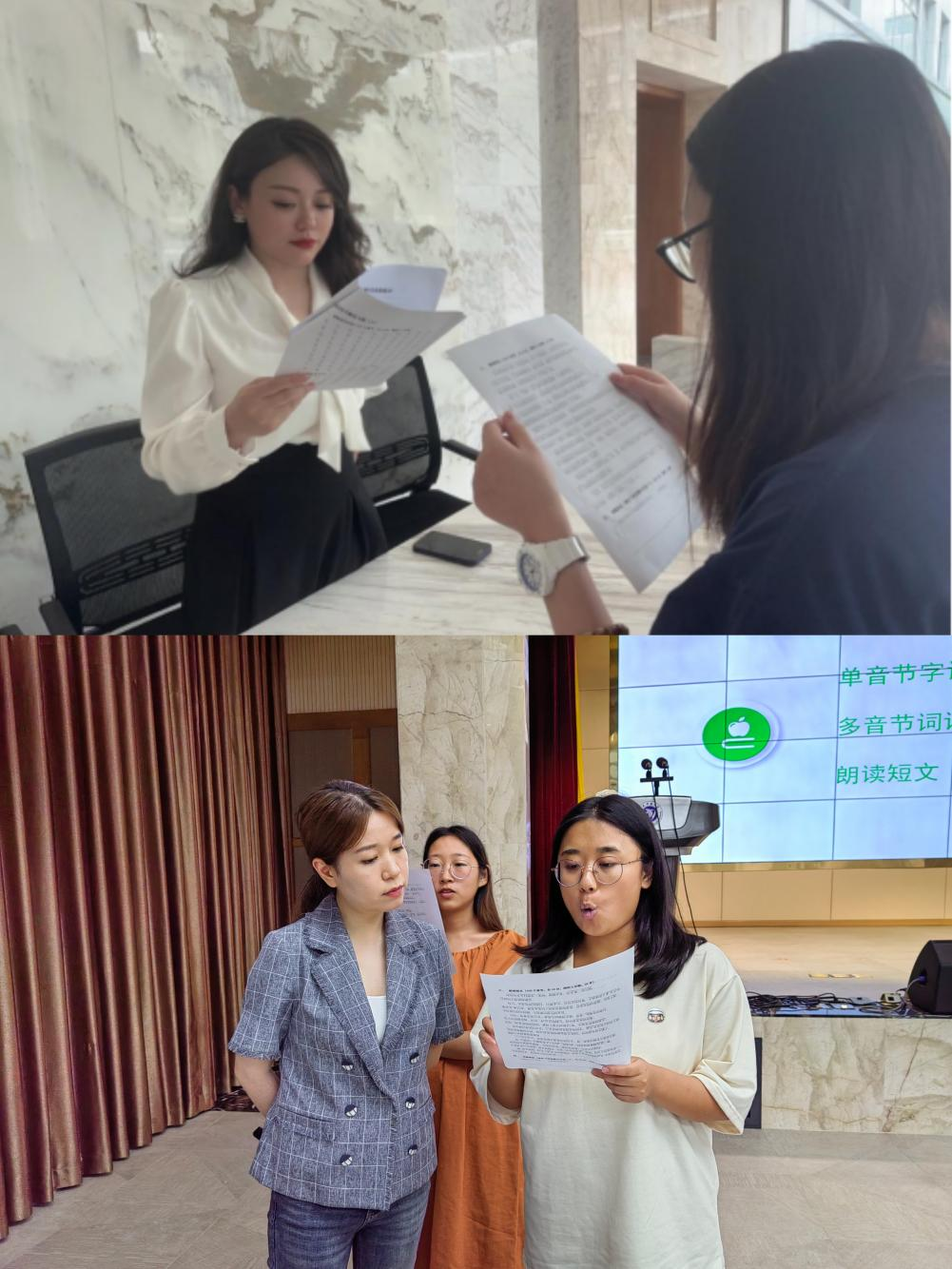 此次“二甲冲刺”班采用“双师”授课模式,由两位省级普通话水平测试员担任培训老师,从语音基础知识、多音节词练读、朗读训练指导、命题说话技巧、纠正易错字词等多方面进行针对性授课。培训以“2+2+5”的形式进行,即2天线下教学夯实基础,2次模拟测试纠正语音,5天线上辅导巩固提升,全方位、多形式快速提升学员普通话水平。