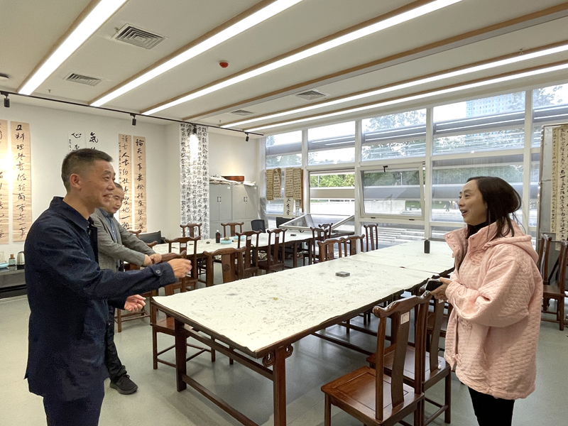 在文化馆,于静馆长陪同参观并介绍了各功能区域的运行情况。同志们实地观摩了舞蹈排练厅、数字文化体验区、美术书法教室等功能空间,切身感受公共文化空间在服务市民美育、涵养城市文化气质方面的积极作用,进一步深化对“党建引领文化育人”的理解。