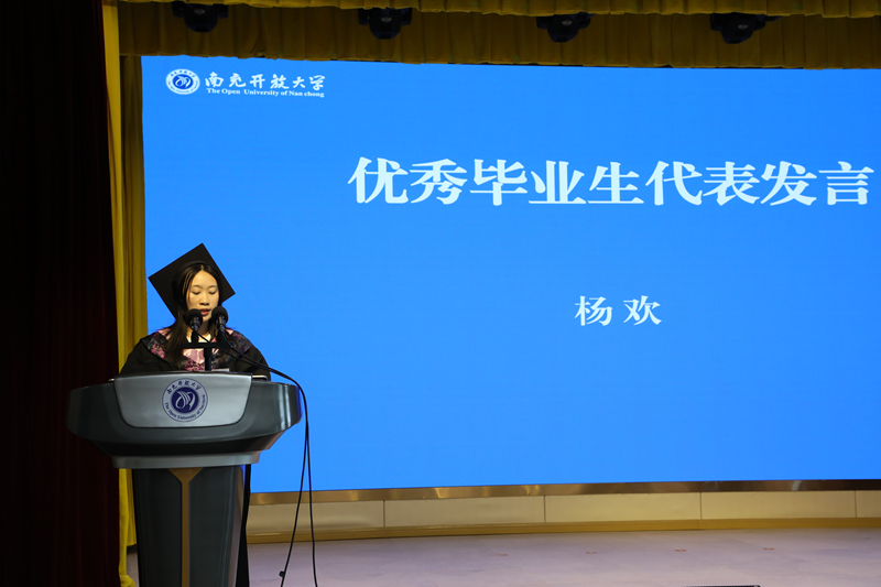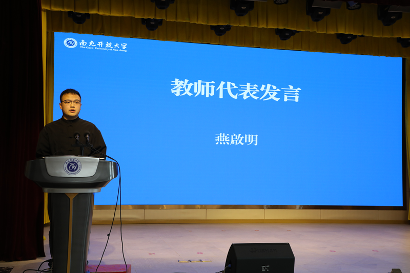 随后,优秀毕业生代表杨欢结合自身在校求学、线上深耕研学、职业同步成长的亲身经历倾情分享。教师代表燕啟明立足开放教育育人岗位初心,郑重许下潜心从教、用心导学、全力护航学子成长的育人承诺。春季新生代表屈琴宜登台表态发言,郑重承诺必将不负学校栽培、不负家人期许、不负青春时光,自律勤学、务实笃行,圆满完成各项学业任务。