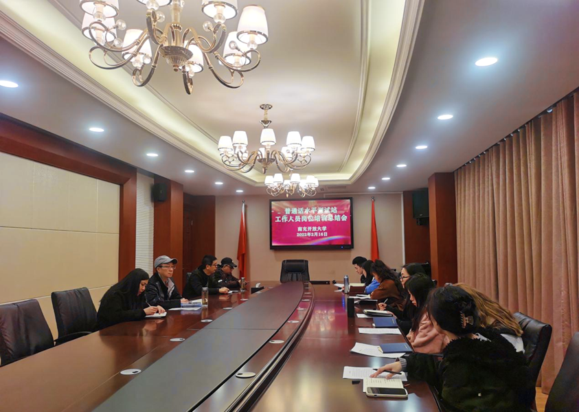 2022年2月16日上午,设在南充开放大学的南充市普通话水平测试站工作人员赴四川开放大学普通话水平测试站上岗实习总结会在校五楼会议室召开。