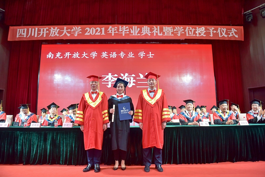 李海兰在四川开放大学参加2021年毕业典礼暨学位授予仪式
