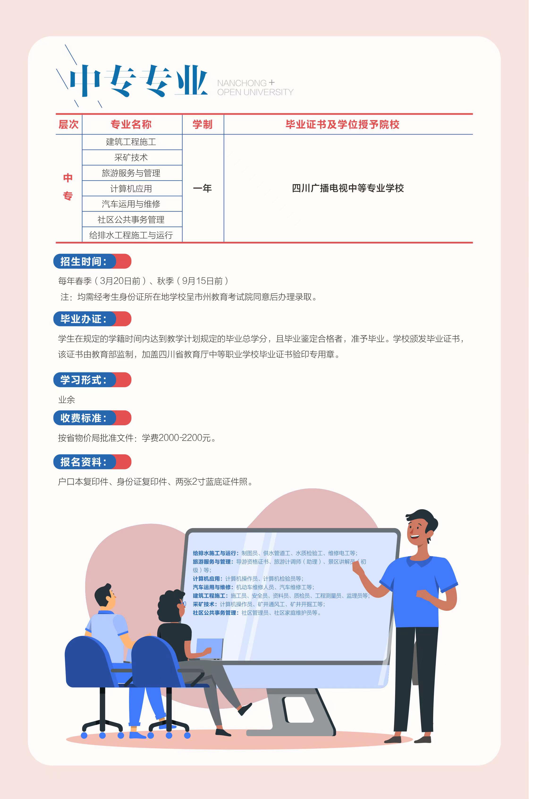 报名地点:南充开放大学招生处(顺庆区西河南路38号)或咨询南充开大教职工。