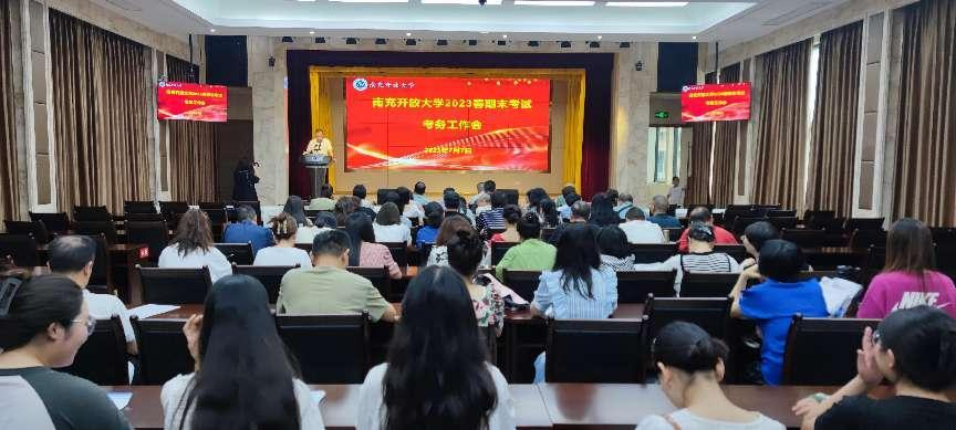 7月7日下午,南充开放大学召开2023春期末考试直属考点考务工作会。会议由副校长曲阳主持,校党委书记、校长昝平出席会议并讲话。