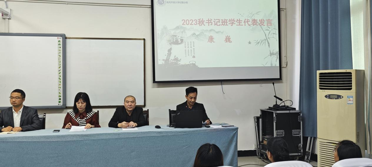 播下希望的种子,怀揣收获的梦想。2023年10月14日上午8:30,南充开放大学仪陇分校2023秋季新生开学典礼在学校三楼会议室隆重举行。仪陇分校领导班子成员、全体教师及新生学员参加开学典礼。开学典礼由教务处主任蔡青同志主持。