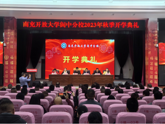10月10日,南充开放大学阆中分校在学术报告厅举行2023年秋季开学典礼,中共阆中市委组织部、阆中市教科体局相关负责同志,2023年春季学期优秀班干部、学习之星,2023年秋季新生学员以及阆中分校全体教师参加开学典礼。