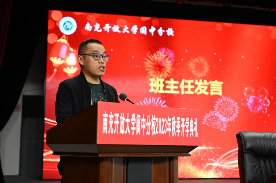 南充开放大学阆中分校负责人李蓉在讲话中表示,短短两年时间,阆中分校已经注册在籍学生650余人,获得上级开大和社会各界的肯定认可,成绩来之不易,她希望全校师生心怀家国,永葆良好形象;转变角色,永葆学习热情;终身学习,永葆奋进姿态,不断成长自己,成就开大。
