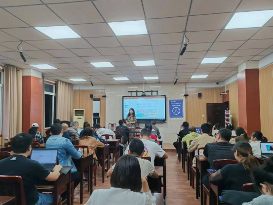 图为胡晓婷老师在指导项目班学生了解熟悉国开学习网