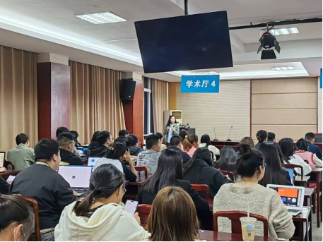 图为郭婧老师就学生关心的问题释疑解惑