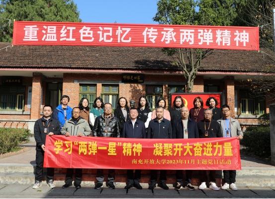 为持续深入开展学习贯彻习近平新时代中国特色社会主义思想主题教育活动,赓续红色血脉,弘扬“两弹一星”精神,增强党员党性修养,坚定教书育人初心,牢记立德树人使命。11月27日,南充开放大学党员同志和民主党派代表前往梓潼县两弹城,开展“学习两弹一星精神 凝聚开大奋进力量”主题党日活动。
