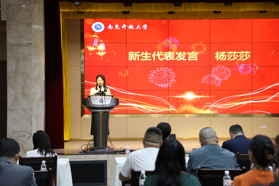直属部2024年春季药学本科杨莎莎同学作为新生代表发言,她决定树立自主学习观念,全力配合班主任工作,积极完成各环节学习任务,熟悉掌握开放教育的学习特点,正确处理好工作与学习的关系,做到实践与理论相结合,注重知识、能力和素质的统一,重视知识的融会贯通,努力圆满地完成全过程的学业。