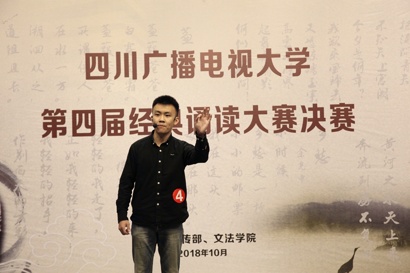 ▲图为南充电大学生王奎参加省电大诵读大赛现场决赛现场
