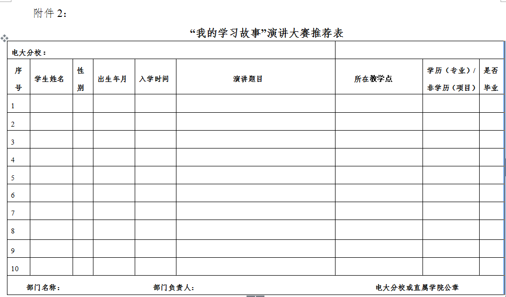 3.“我的学习故事”演讲大赛推荐表(附件2)。