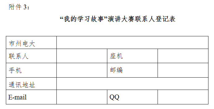 4.“我的学习故事”演讲大赛联系人登记表(附件3)。