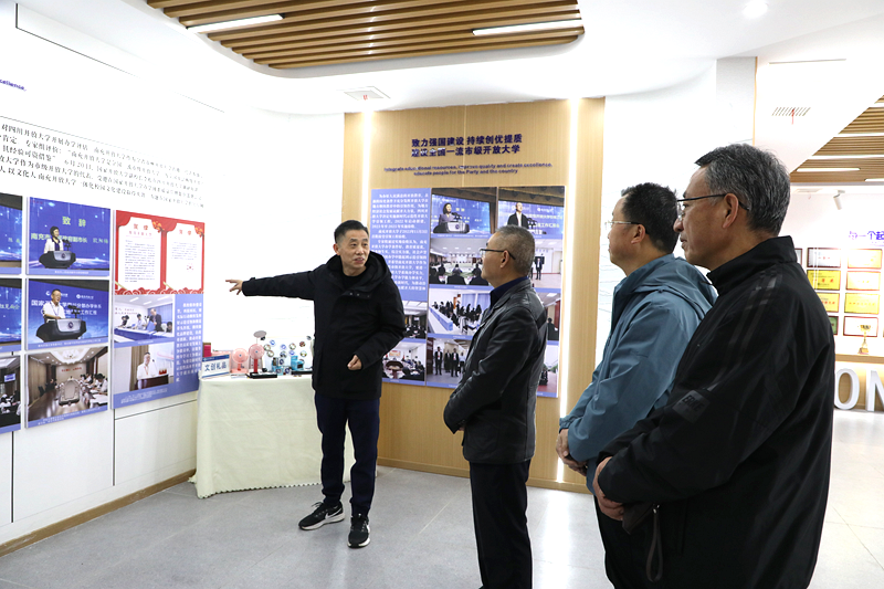 12月2日,南充市文联党组书记、常务副主席兰海,副主席兼秘书长杨林,市摄影家协会常务副主席黄保家到校调研交流,校党委书记杨震陪同调研并主持座谈交流。