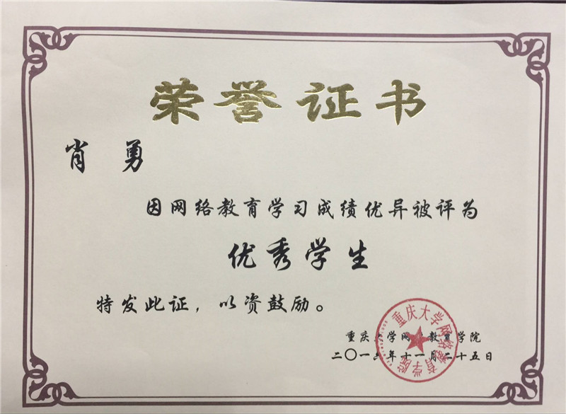 今日获悉,重庆大学网络教育学院第十届“优秀学生”获奖名单公布。重庆大学网络教育学院南充校外学习中心学生李泽建、唐艳林、屈春秀、肖勇四位同学荣获优秀学生称号。