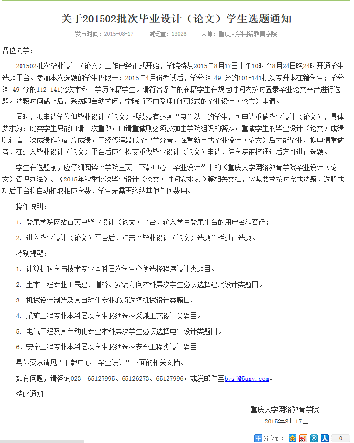 下一篇:关于2015年秋季9月份主题语音答疑安排的通知