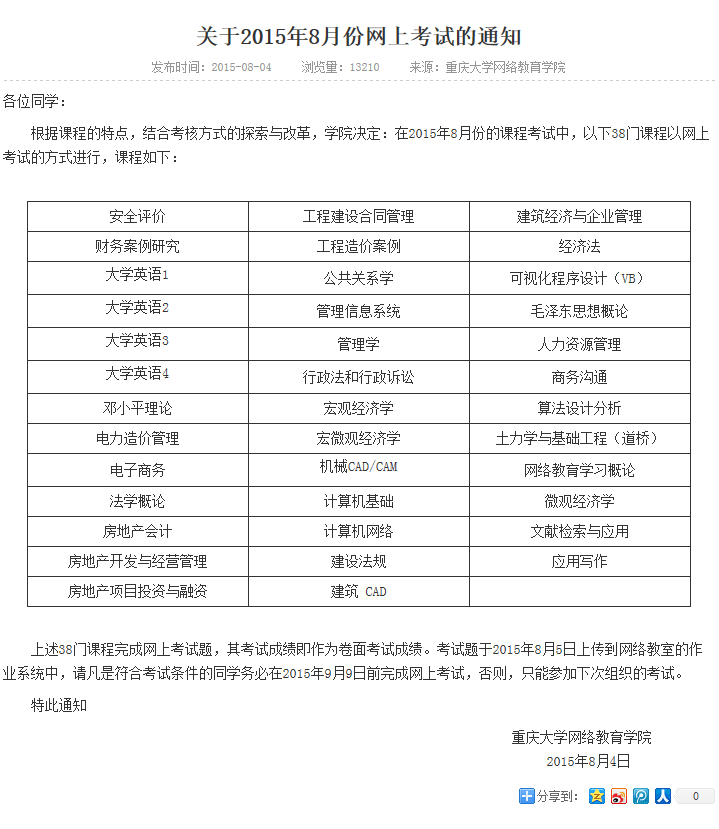 下一篇:关于2015年秋季学期8月份主题语音答疑安排的通知