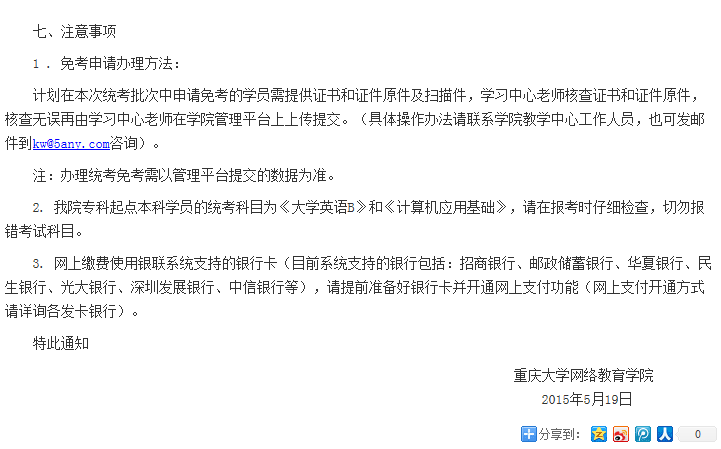 上一篇:关于2015年课程考试总复习语音答疑安排的通知