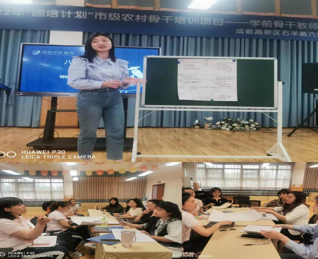 国培第四组学员们走进成都市高新区石羊第三幼儿园,进行了为期半天的“浸润式”跟岗、交流和学习活动。本着“资源共享、互学互助、共同发展的理念,该园对本次活动进行了精心的筹备和细致的安排,全方面、常态化地向国培班老师展示了他们的半日活动。在相互的分享交流中,跟岗学员们纷纷表示:“通过学习交流,自身的教育理念和工作能力等方面都有较大的改变和提高,同时也高新区石羊第三幼儿园老师们的团结协作、求真务实、敬业奉献的精神所深深地感染,受益良多。