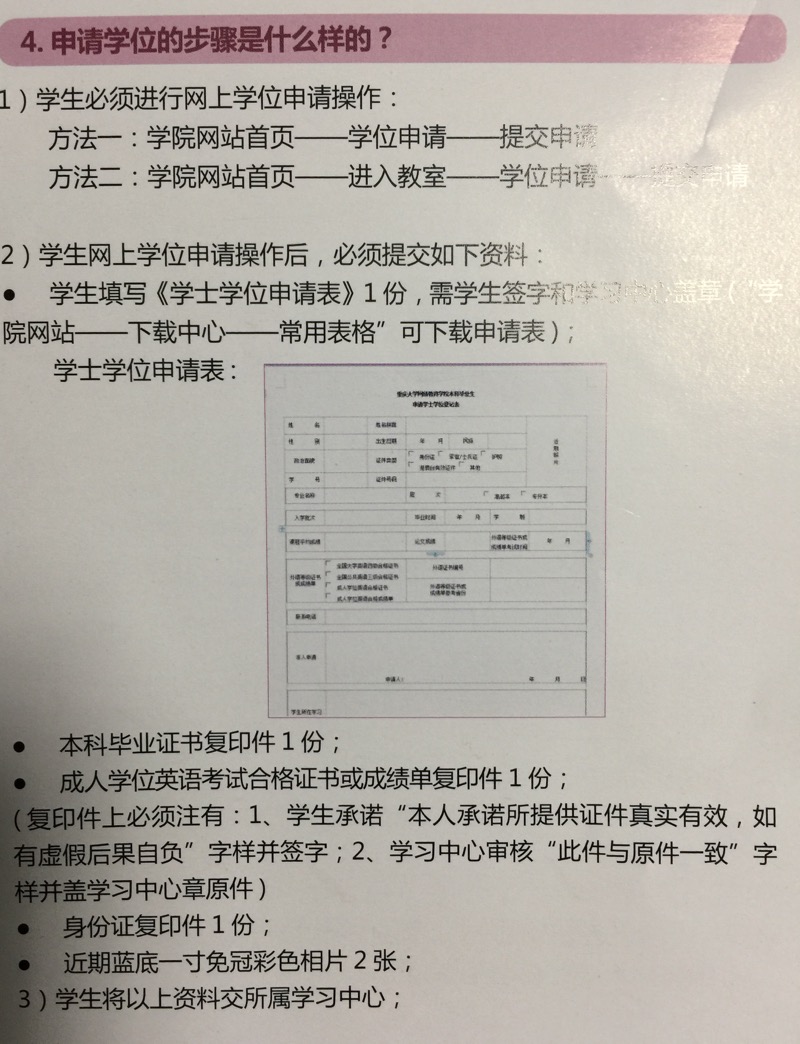 每年受理学位申请两次,分别是5月和11月,由学生本人在学院规定的时间内提出学位申请,过时不予受理。毕业生取得毕业证书(以毕业证书落款时间算起)三年内可以申请学位,超过规定申请期限的学生将失去申请资格,学院不再受理学位申请,申请步骤如下图: