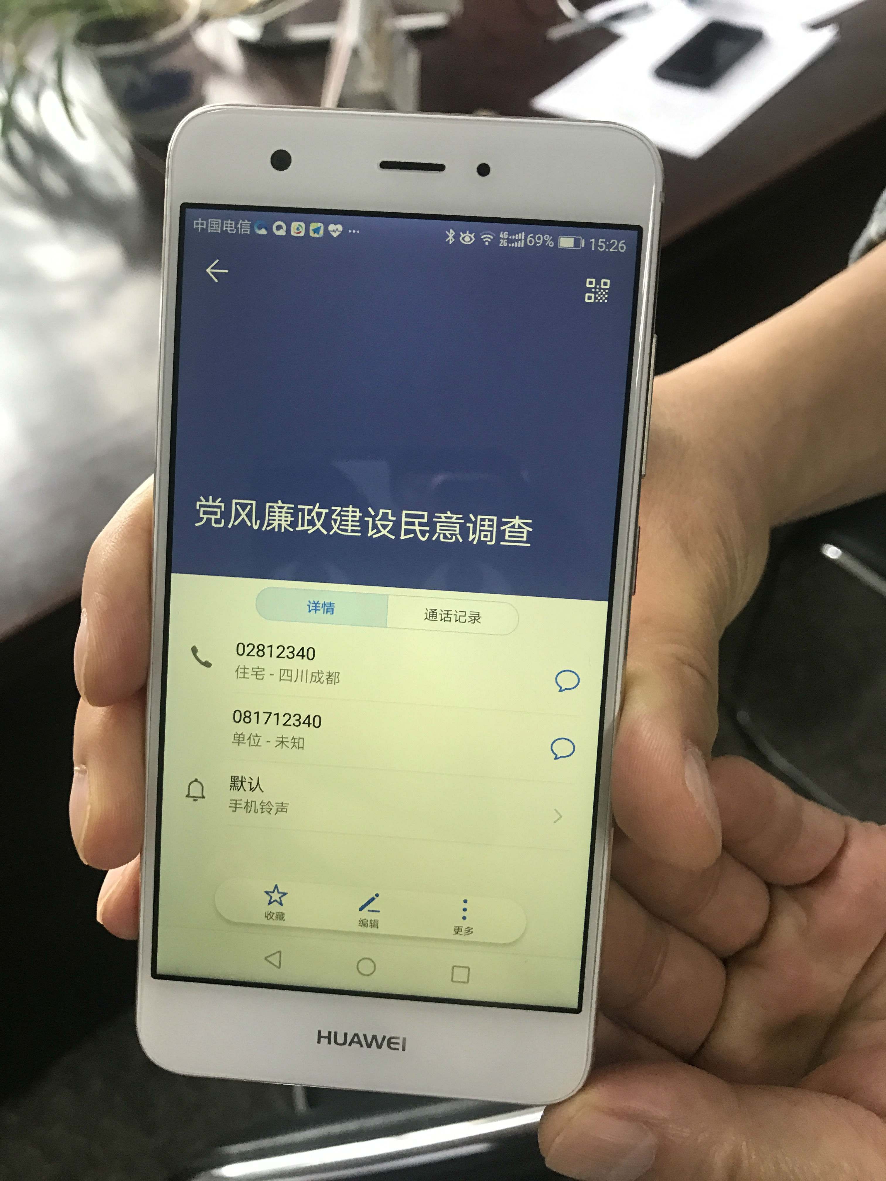 为扎实推进南充电大2018年党风廉政建设社会评价工作,确保社会评价工作宣传无死角,5月29日下午,我校开展了党风廉政建设社会评价工作专项督查。此次督查共抽查了教职工8人、门卫2人,均知晓028—12340民意调查号码、调查内容、调查时长等内容,知晓率为100%。并已将民意调查号码存入手机,表示愿意耐心接听电话,正面评价南充党风廉政建设和社会发展取得的成绩。